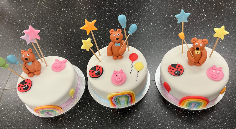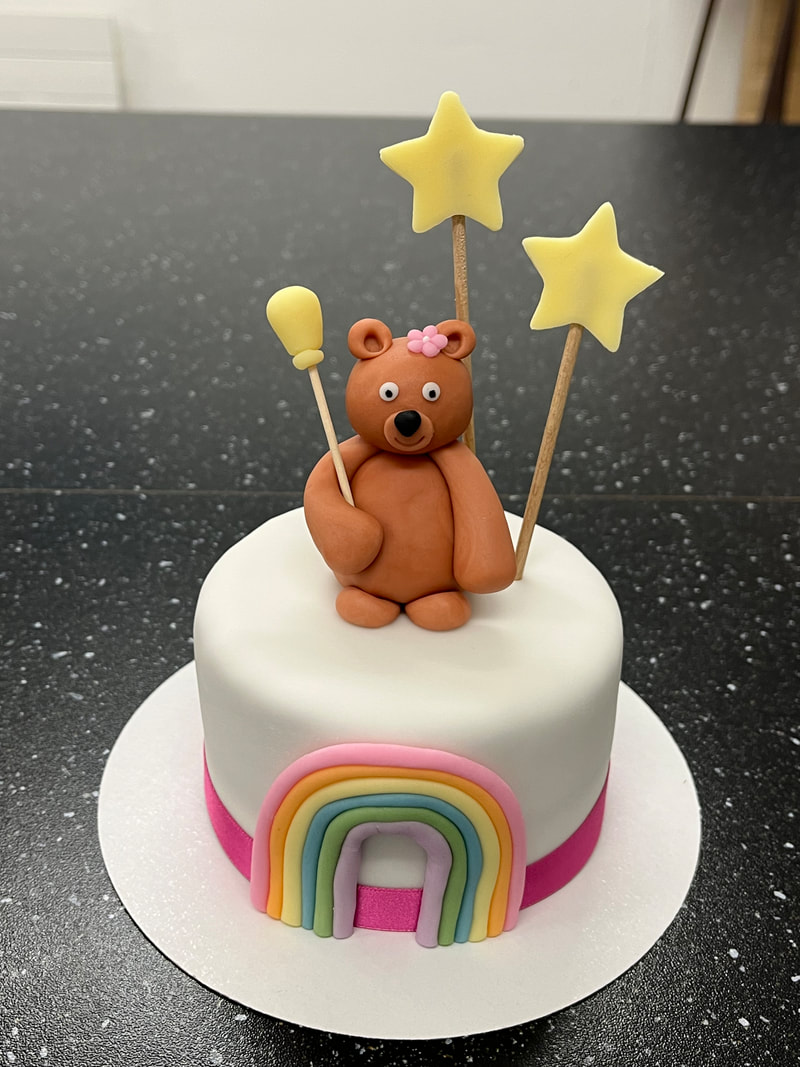 - Herstellen von einfachen Dekoelementen für Kindertorten wie z.B. einen kleinen Bären modellieren, flache Tier-Tortenaufleger, Sterne und Regenbogen Cake Topper